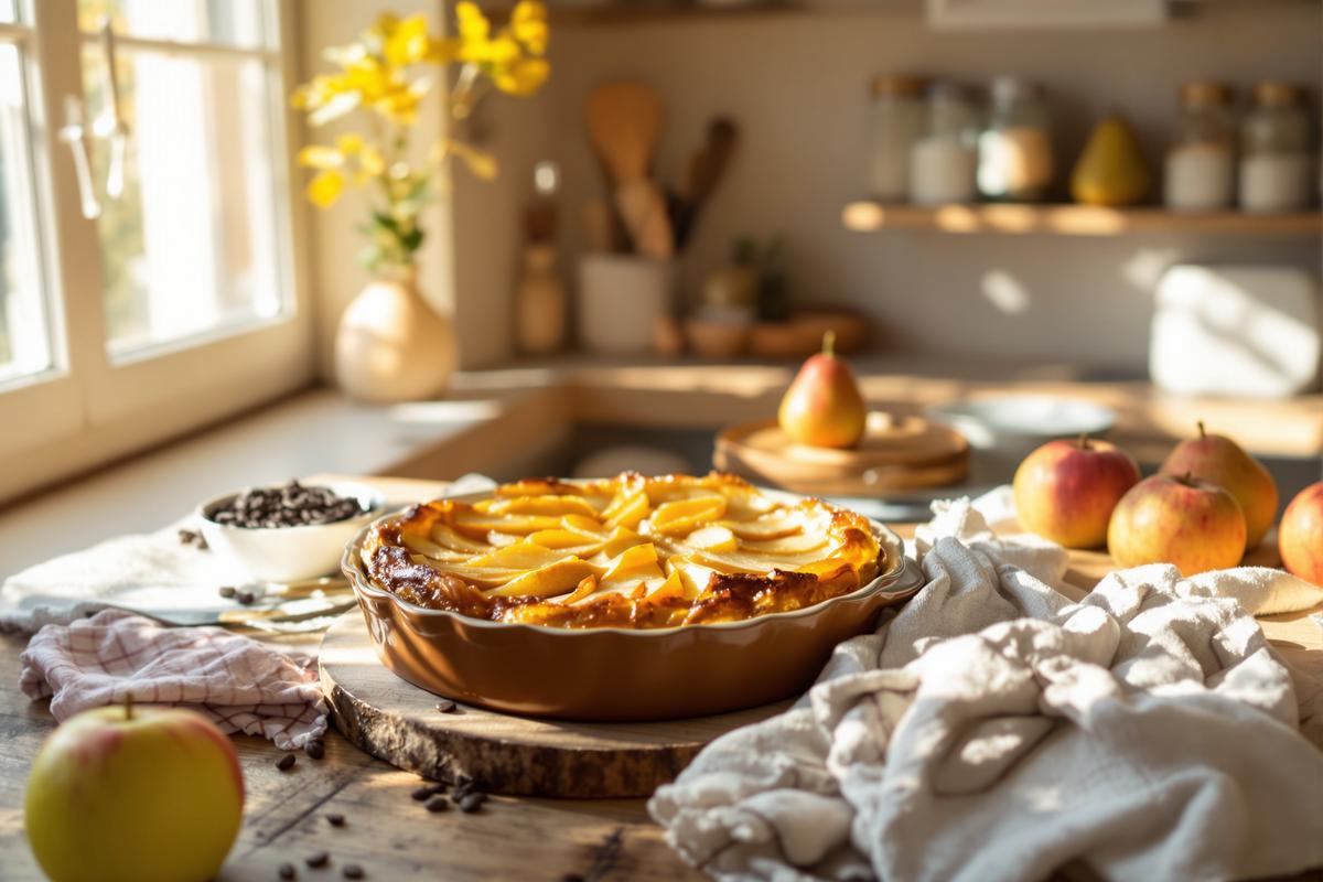 On pense souvent au clafoutis en été, avec des cerises. Mais l’automne lui donne une toute nouvelle dimension. Pommes et poires bien mûres se rencontrent ici dans une pâte douce, parfumée à la vanille. Le résultat ? Un dessert qui fait fondre petits et grands.