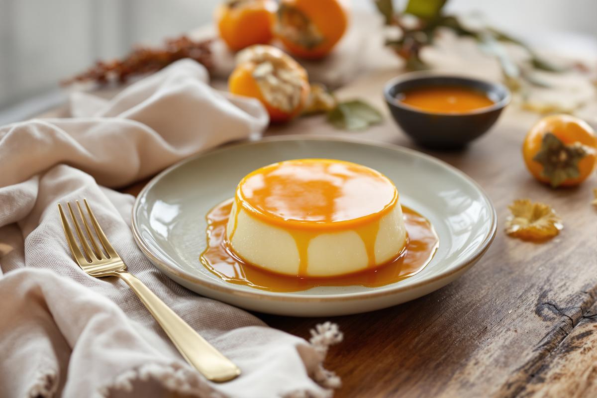 Ce contraste de textures et de saveurs crée un équilibre parfait. Le fruit dense et sucré du kaki répond à la fraîcheur citronnée du flan pour offrir une sensation en bouche à la fois riche et légère. Un vrai jeu d’équilibre, sans surcharger le palais.